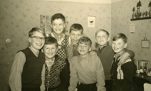 Enjoying a party on my twelfth birthday in November 1956. Three months later I said goodbye to all my friends. I am the slender boy third from the right. |