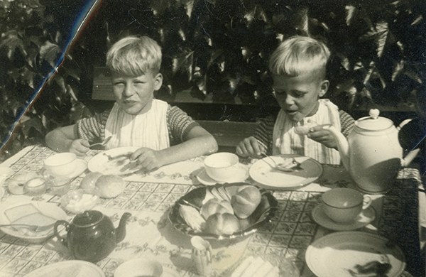 My younger brother Rüdiger (on the right) and me enjoying breakfast during the one magical vacation my family took to Bodensee, or Lake Constance, in the South of Germany in the summer of 1952.