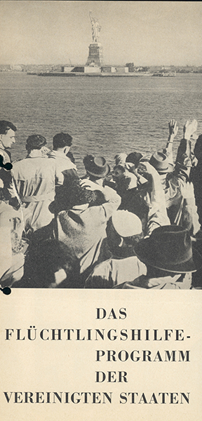 This brochure from the 1950s reads, in German, “Refugee Program of the United States."