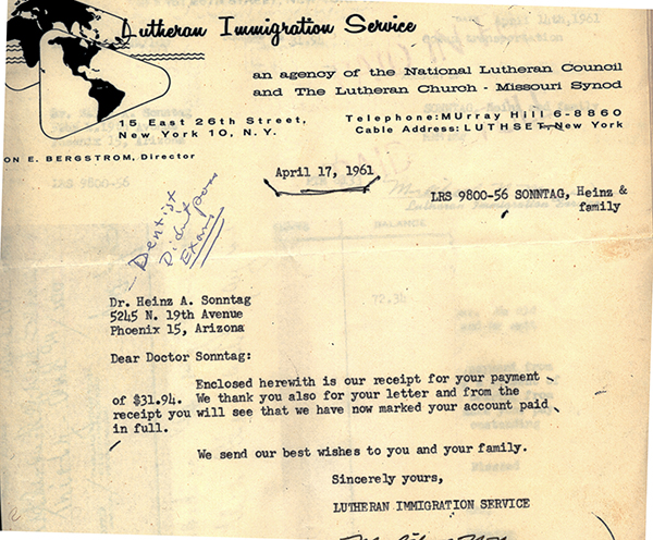 Two and a half years after immigrating, my parents still owed the Lutheran Refugee Service a substantial amount of money. |