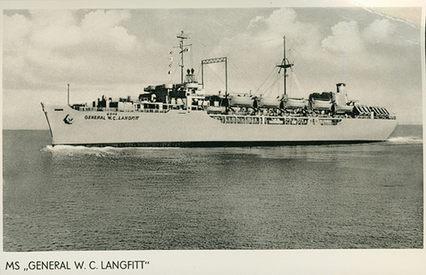 My parents, brothers and I were among 1,600 German and Eastern European refugees and displaced persons to sail out of Bremerhaven on March 26, 1957 aboard this former troop transporter, the MS General W.C.Langfitt.