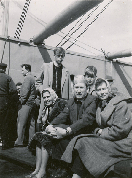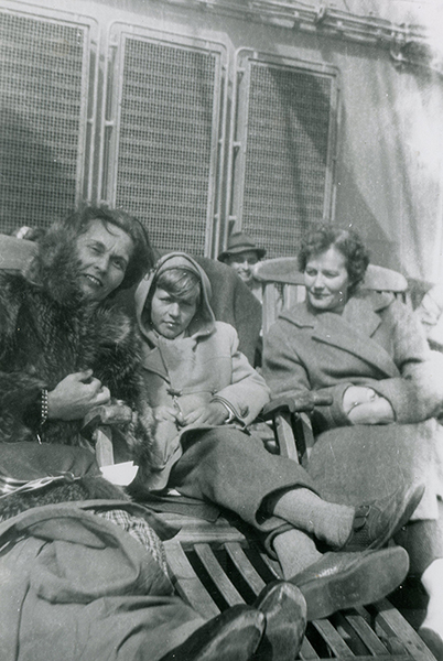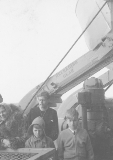 My mother, brothers and me shortly after we boarded. Not understanding English, and being surrounded by people speaking a variety of different languages was unnerving.