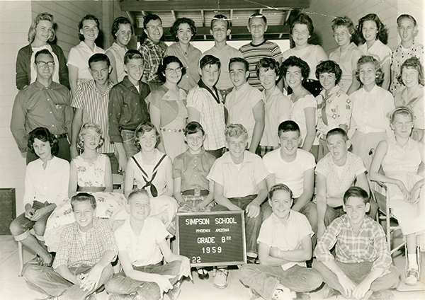 By eighth grade, I had learned enough English to start fitting in. I am the blond boy in the middle of the second row.