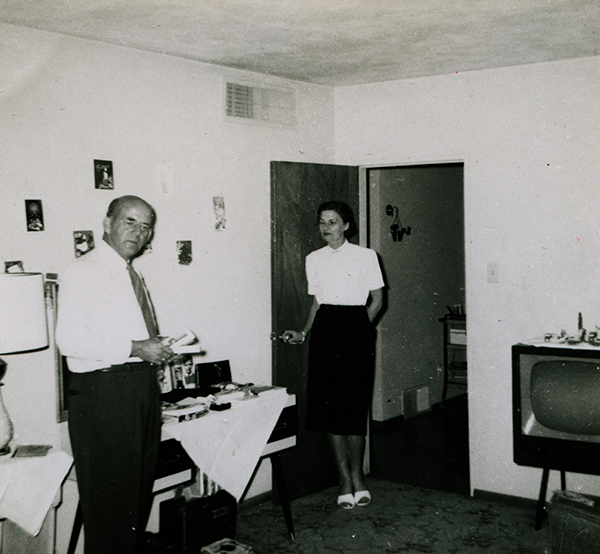 Gunther with my mother in the back of our first home in Arizona, which backed up to a citrus orchard. It was a revelation to me that oranges grew on trees.
