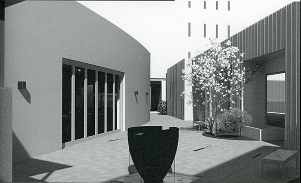 A courtyard leading to the Sonntag Academic Pavilion at Saint Joseph’s Hospital.